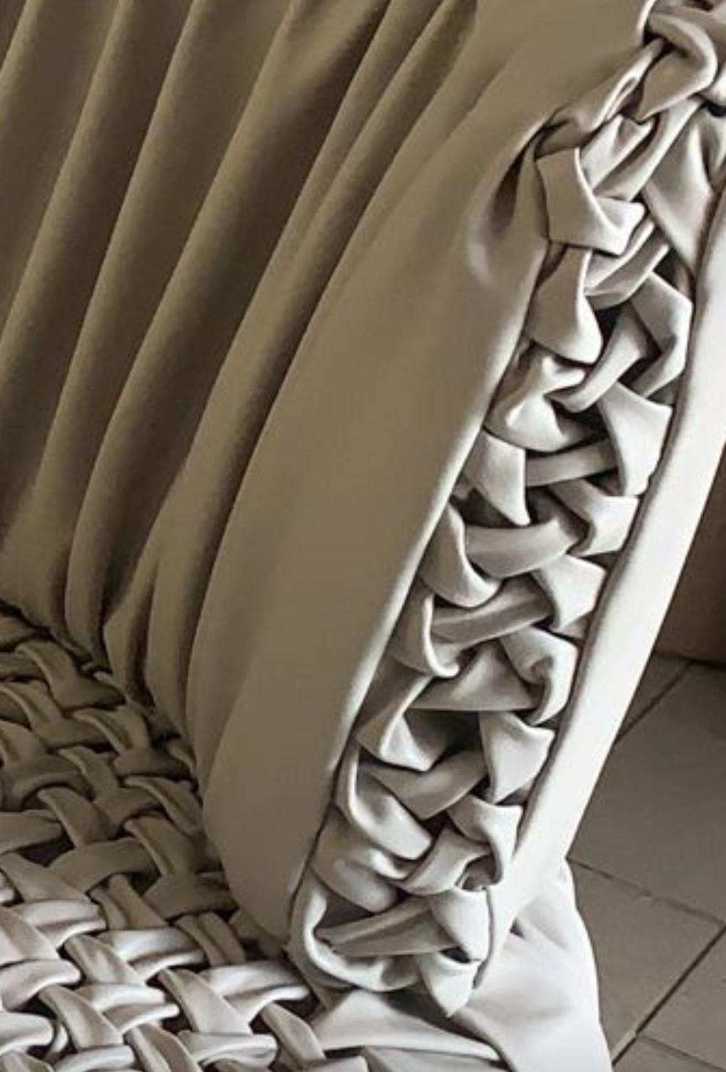Il servizio tessile offre la possibilità di progettare e realizzare oggetti tessili come cuscini, pochette e tende, a cui è possibile aggiungere il logo o il brand.